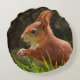 A rare red squirrel appears to smile with delight as it enjoys a snack in the lush grass. Its open mouth and bright eyes reflect pure joy, capturing a fleeting moment of happiness in nature.