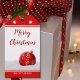 A classic and festive Christmas gift tag featuring a red Christmas bauble in snow in a minimalist red white design.