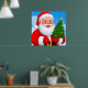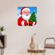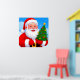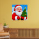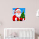 Vibrant cartoon Santa smiles warmly, holding a small decorated Christmas tree against a blue sky. Perfect for holiday greetings, family themes, and festive retail campaigns. Great for seasonal banners, social posts, and gift guides.