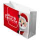 A festive Christmas gift bag featuring a cheerful Santa Claus design, highlighting the vibrant colors and playful details, creating a joyful look.