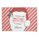 This personalized pillowcase features a cheerful Santa face with place to add a name on Santa's beard. The background is a red and pink striped pattern.