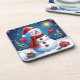 Cheerful Snowman Wearing a Santa Hat Beverage Coaster