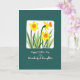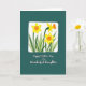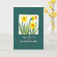 Designed with a deep teal background, the front features an off-white rectangular frame with softly brushed edges that feels gentle and welcoming. Inside the frame, three spring flowers with sunny yellow petals and orange trumpet-shaped centers lean toward one another like close friends sharing a quiet moment ❤️. Their slim green stems and layered leaves overlap naturally, adding a cozy, togetherness feel without looking stiff. Subtle brush textures give the blooms a soft, painted look, as if they were set down with care. Centered beneath the flowers, the message “Happy Mother’s Day To a Wonderful Daughter” appears in white, flowing lettering that stands out clearly against the teal. The text sits low on the design, leaving the floral scene to take the spotlight while the words provide a gentle greeting 🌼. One blossom is slightly turned to the side, with its orange center angled toward the left edge of the frame.