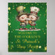 A lively St. Patrick’s Day design featuring two festive characters in green attire raising beer mugs in celebration. Playful Irish‑themed artwork and bright holiday elements create a joyful, welcoming scene perfect for St. Patrick’s Day gatherings and seasonal designs.