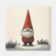 A charming illustration of a festive gnome dressed in a vibrant red hat and coat, standing in a serene snowy landscape. The gnome’s long white beard and whimsical nose peek out from beneath the tall, pointy hat, evoking a sense of holiday joy and Nordic folklore.