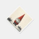 A charming illustration of a festive gnome dressed in a vibrant red hat and coat, standing in a serene snowy landscape. The gnome’s long white beard and whimsical nose peek out from beneath the tall, pointy hat, evoking a sense of holiday joy and Nordic folklore.
