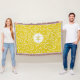 Personalize your bedroom, dorm or living space with a custom throw blanket in a cheerful color scheme of mustard yellow and white. A round frame in the center of the design has a text template for your name and monogram initial. The bright color scheme adds a little sunshine to your decor while offering cozy warmth and comfort.