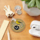 A cute, cheery, bright yellow bird perches on a twig embellished with stylized swirls and leaves on a light brown background in this naturalistic illustration. Personalize the black circle beside the warbler with a white monogram. Makes a unique outdoorsy gift for birdwatchers, nature lovers, hikers and outdoorsmen!