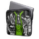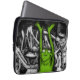 The sleeve is made of nice feeling material and seems very durable. I'm not sure how easy it'll be to clean, but the construction seems sound and the fabric is quick thick. I also like the double zipper. The printing is lovely and appears durable. The white on black contrast is nice, and the design very elegant.