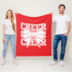 Fleece blanket is shown in a color of red with a white cheer bow print.
