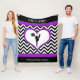 Personalized cheer or pom fleece blanket with chevron stripes, a cheerleader/pom girl inside a purple heart, and custom text.
