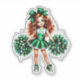This custom cut sticker is shown here with a cute cheerleader girl print.