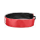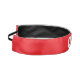 Nonslip wide headband shown in red and black satin with white cheerleader print.