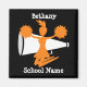 Cheerleader's magnet with cheer megaphone and cheerleader in black, white and orange. Customize with your name and school name, change text or remove text. The background color can be changed or other color choices are available. Great gift or stocking stuffer for the cheerleader in your life. Buy in bulk and pass out at the pep rally!
