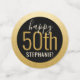 Custom Black and Gold Personalized Large Oversized Birthday Table Confetti Sprinkles for a Modern and Elegant Birthday Party for any Age with Faux Gold Foil Circle Border. Add the name and edit the age for any birthday party celebration with "Cheers to 50 years" and "Happy 50th!" text.