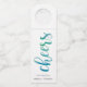 Clean and simple bottle hanger features watercolor "Cheers" handwriting script in tropical turquoise, sea foam green and aqua blue. Artwork by KL Stock.