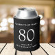 Raise a toast at your 80th birthday party with this black can cooler that features "Cheers to 80 Years" and your name in modern white lettering.