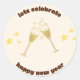 Celebrate new beginnings with "Cheers" elegantly paired with clinking champagne glasses on a soft cream background adorned with delicate stars. This timeless design radiates warmth and festivity, perfect for ringing in the New Year with style and charm.