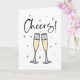 Chic champagne glasses with the word Cheers! as they toast, with a sincere, customizable message inside.