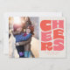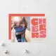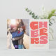 Cheers fun groovy retro pink red New Year photo Holiday Card