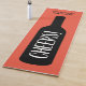 Cheers funny wine bottle silhouette custom name Yoga Mat. Personalized accessories for yoga classes and meditation lessons. Stylish Birthday gift idea for yoga lessons teacher, meditation therapist, school, class trainer, zen coach, student or gym instructor. Fun personal fitness equipment for him or her. Add your own logo, name or monogram letters. Stylish brush script typography template. Customizable background color. Also handy for home training, gym workout, home exercises and more.