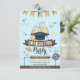 Raise a glass to the new graduate! This vibrant and fun Graduation Party Invitation features a celebratory toast with champagne glasses, a graduation cap, and floating diplomas. The clean light blue background and gold accents make it perfect for a modern and joyful graduation bash. Fully customizable template for your name, date, time, and location.