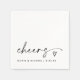 Celebrate in style with these modern black and white “cheers” cocktail napkins — a chic, fun accent for weddings, engagements, rehearsal dinners, or anniversaries. Featuring elegant handwritten script and a hand-drawn heart, this simple yet stylish design adds a touch of personality to every toast. Customized with the couple’s names and date, these napkins blend classic elegance with modern charm, creating a refined finishing detail for any celebration.