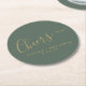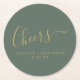 Cheers Minimalist Sage Green Gold Custom Wedding Round Paper Coaster