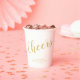 'Cheers' Modern Script Gold Wedding Paper Cups