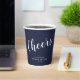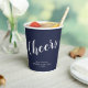 'Cheers' Modern Script Navy Blue Wedding Paper Cups