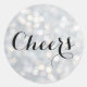 This cheers sticker is a bold ribbon font on an illustrated background of champagne bubbles, silver lights, sparkles or party balloons.... whatever you would like to interpret it as. It makes a great decoration for invitations, your party water bottles, favors, or any party accessory. Scroll down to see additional items.