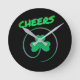 Cheers Shamrock Clover Ireland Irish Round Clock