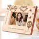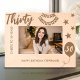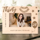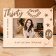 Celebrate a milestone moment with this "Cheers to 30 Years" personalized wooden frame. Perfect for marking a special 30th birthday, this frame features festive engravings of stars, a balloon, and a celebratory banner. Customized with a name and birthday message, it's a meaningful keepsake that will hold treasured memories of this special day. Ideal for a 30th birthday gift, this wooden frame adds a touch of charm to any celebration.