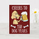 Cheers to 350 Dog Years funny 50th Birthday. It says "Happy 50th Birthday!" on the inside. Great for a dog owner and beer lover. It features a cute cartoon dog against a dark red background.