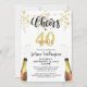 Cheers to 40 Years Black Gold Stars Script Invitation
