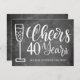 Modern stylish blackboard trendy cheers to 40 years script milestone / any age men birthday party invitation postcard with brushed handwritten typography. ++++++++++ Easy to personalize with age and your party details on both sides!