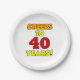 Cheers To 40 Years colorful party plates. Red and yellow colors. Great for a 40th milestone birthday party.