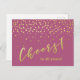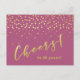 NewParkLane - Glamourous Postcard, with 'Cheers to 40 years!' in elegant brush/ script typography in faux gold, with gold confetti against a raspberry pink background. Fun and elegant design for any milestone birthday, since you can alter the age easily for a personalized design. Text styles & background color can be modified to fit your needs.