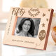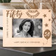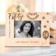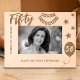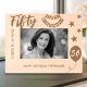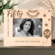 Celebrate the incredible milestone of a 50th birthday with this "Cheers to 50 Years" etched wooden frame. Adorned with festive stars, a celebratory banner, and a custom birthday message, this frame is the perfect keepsake for honoring five decades of wonderful memories. Personalize it with a name to make this unique gift truly special. Ideal for a 50th birthday celebration, this charming frame brings a touch of warmth and nostalgia to any decor.