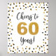 CHEERS TO 60 YEARS sign featuring a beautiful black and gold glitter confetti design.