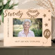 Celebrate the incredible milestone of a 70th birthday with this "Cheers to 70 Years" etched wooden frame. Featuring elegant engravings of stars, a festive birthday banner, and a personalized message, this frame is the perfect keepsake for honoring seven decades of cherished memories. Customized with a name, this unique frame makes a thoughtful and meaningful gift for any 70th birthday celebration, adding warmth and charm to any decor.