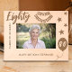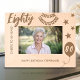 Honor the remarkable milestone of an 80th birthday with this "Cheers to 80 Years" etched wooden frame. Beautifully engraved with stars, a festive birthday banner, and a custom message, this frame is a heartfelt way to celebrate eight decades of wonderful memories. Personalize it with a name to create a unique keepsake that will be treasured for years to come. Ideal for any 80th birthday celebration, this frame brings warmth and elegance to a lifetime of cherished moments.