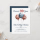 Plain white envelopes are included with paper invitations and will come to fit the invitation size you select. If you don’t need the envelopes, you may choose to not receive them by selecting the dropdown below "Envelopes" and choosing "None." If you’d like to have a design on your envelopes, you can browse all of these available envelopes to find the design that complements your Cheers To 90 Years Birthday Party Invitation.