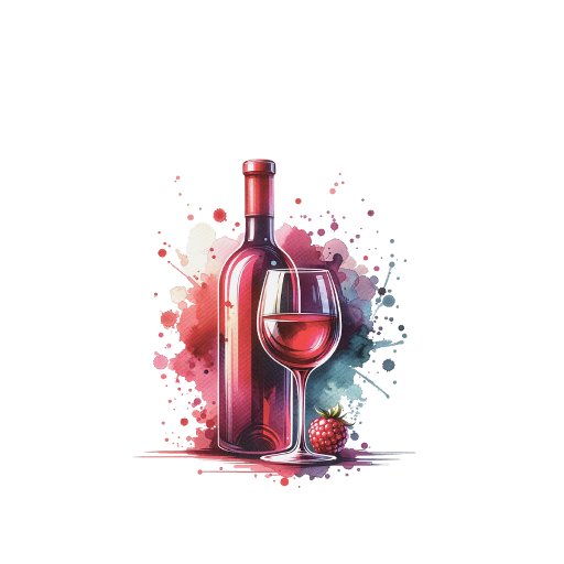 watercolor painting captures the elegance of a wine glass paired with a red wine bottle, exuding sophistication and tranquility.