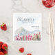 Mountain wedding napkins, lettered with "cheers to love laughter and happily ever after" and an idyllic country landscape of blue ridge mountains and pink wildflower meadow. Customize with the design tool to drag the text into the best position for your names. Beautiful nature inspired scenic design - perfect for outdoor destinations, mountain lakeside and country park retreats or dusty blue grey and pink color themes. Please browse my Mountain Meadow collection for matching items or message me to create the templates you need.