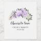 Elegant purple rose floral wedding wine label. Purple roses and white hydrangea flowers are nestled in soft sage green leaves. They form a spray at the top of the wedding bottle wine label. Cheers to Love is written in a lovely and popular script. The wedding couple names are written below in a classic serif font. The wedding date follows. All of the text can be easily changed. This wine label coordinates with the Violette collection.