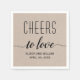 Cheers to love elegant and modern rustic kraft style wedding paper napkin. It showcases the phrase "Cheers to love" in cursive script handwritten calligraphy style text.