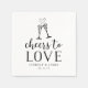 Make your cocktail hour extra special with our personalized wedding napkins featuring a pair of champagne flutes joined by an effervescent heart. "Cheers to love" appears beneath in black calligraphy script and vintage block typography. Customize these whimsical yet elegant black and white napkins with your names and wedding date.