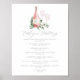 Charming botanical wine tasting menu sign displays your wine selections topped by a bottle of rose wine with the couple's initials inscribed, and two wine glasses on a bed of green watercolor eucalyptus leaves and foliage. Designed to match our Cheers to Love invitation collection.