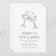 Celebrate a milestone with our elegant retirement party invitation! At the top, two simple outline drawings of champagne glasses clink together in a toast, setting a festive tone for the occasion. Below, there's plenty of space for all the party details, ensuring your guests have all the necessary information to join in the celebration. This sophisticated design is perfect for honoring the retiree and making their transition into the next exciting chapter a memorable event.